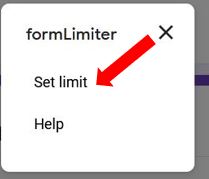 Click Set limit and the formLimiter pop up box will open from the bottom right corner of the screen. Under Limit Type, click on Select and choose number of form responses…